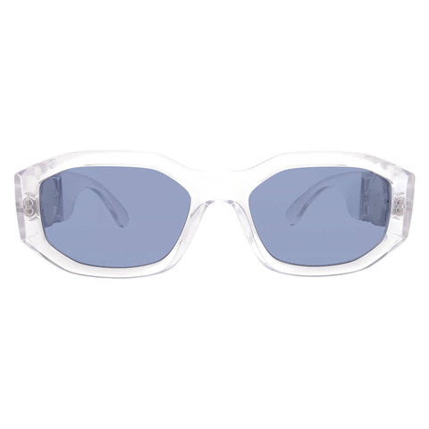 Versace Sunglasses. Series number: 0VE4361. Color code: 148/80. Shape: Geometric. Lens Width: 53 mm. Lens Bridge: 18 mm. Arm Length: 140 mm. 100% UV protection. Non-Polarized. Frame Material: Plastic. Frame Color: Crystal. Lenses Type: Dark Blue. Rim Style: Full-Rim. UPC/EAN code: 8056262267202. Versace Dark Blue Geometric Unisex Sunglasses VE4361 148/80 53.<br/><br/>Manufacturer's Packaging Included. Packaging Size And Color May Vary.
