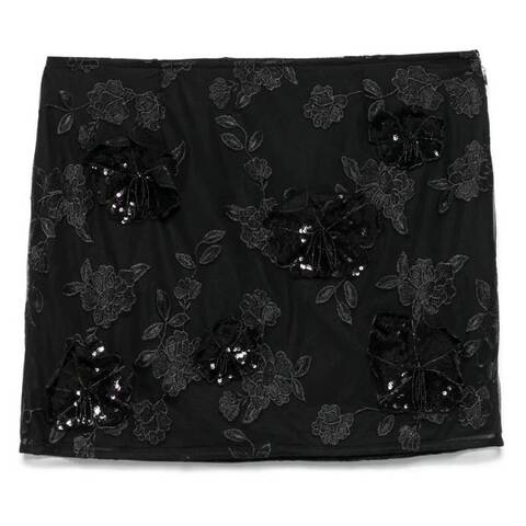 Rotate Mesh Flower Embroidered Mini Skirt, Brand Size 38 ( US Size 4 ) - 113587100-BLACK (LPN380977)