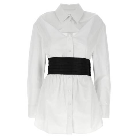 Alexander Wang Ladies Dresses. Fashion category: Casual Dresses. SKU: 1WC1256712. Color: White. Alexander Wang Mini Cotton Shirt Dress. This dress features a short-pointed collar, a mini shirt dress silhouette, front button closure, long sleeves with buttoned cuffs, and an elasticated or contrasting band/belt at the waist with a cut-out detail at the front for a modern and flattering look. 100% Cotton.