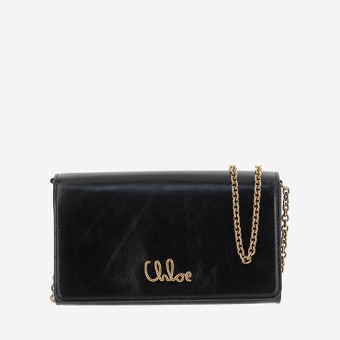 Chloe Ladies Shoulder Bag. SKU: CH25SP485O16001. Color: Black. Chloe Logo Shoulder Bag. Bag made of leather One on-top chain shoulder strap Magnetic button closure Contrasting logo detail on front Two main compartments One zippered pocket Several card slots Black Made in Spain . Composition: 100% Leather.