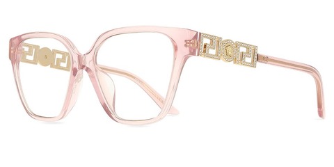 Versace Eyeglasses. Series number: VE3358BF. Color code: 5472. Shape: Square. Lens Width: 54 mm. Lens Bridge: 16 mm. Arm Length: 140 mm. Non-Polarized. Frame Material: Plastic. Frame Color: Transparent Pink. Lenses Type: Demo. Rim Style: Full-Rim. UPC/EAN code: 8056262035290. Versace Demo Square Ladies Eyeglasses VE3358BF 5472 54.<br/><br/>Manufacturer's Packaging Included. Packaging Size And Color May Vary.