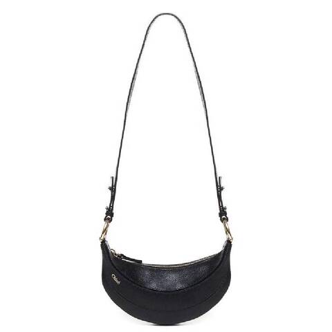 Chloe Ladies Crossbody. SKU: CHC24WP431N72001. Color: Black. Size: L 22cm x W 10cm x H 10cm. Chloe Banana Leather Crossbody Bag. This crossbody bag features a top zip fastening, gold-tone hardware, a logo stamp on the front, and an adjustable shoulder strap for versatile shoulder or crossbody carry. 100% Calf leather. Made in Italy.