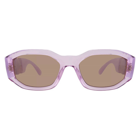 Versace Sunglasses. Series number: VE4361. Color code: 552663. Shape: Geometric. Lens Width: 53 mm. Lens Bridge: 18 mm. Arm Length: 140 mm. 100% UV protection. Non-Polarized. Frame Material: Plastic. Frame Color: Transparent Lavander. Lenses Type: Light Brown. Rim Style: Full-Rim. UPC/EAN code: 8056262510384. Versace Light Brown Geometric Ladies Sunglasses VE4361 552663 53.<br/><br/>Manufacturer's Packaging Included. Packaging Size And Color May Vary.