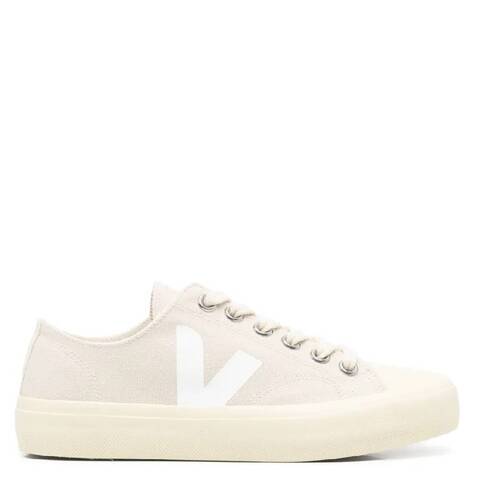 Veja Ladies Sneakers. SKU: PL0120568A-PIERRE_WHITE. Color: Pierre White. Vamp Style: Lace-up. Veja Pierre White Wata II Ripstop Low-Top Sneakers. These sneakers feature a meticulously padded interior for guaranteed comfort, coupled with a sleek, smooth silhouette adorned with a distinctive V logo and metal eyelets for the laces, epitomizing both elegance and durability. The rubber sole, perfectly harmonized with the upper, ensures exceptional grip and stability with every step. Upper Material: Canvas. <br/><br/><b>Please visit the brand website for sizing information.</b>