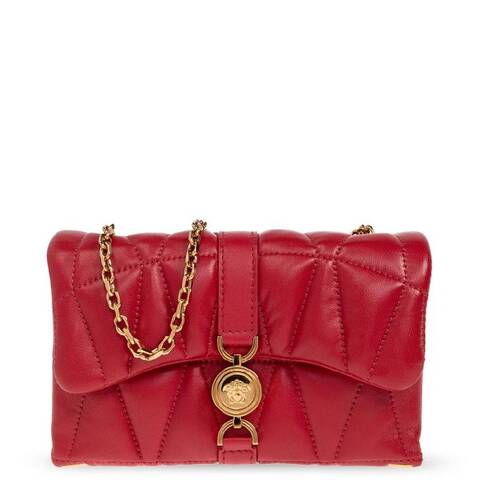 Versace Ladies Mini Bag. SKU: 1017740-1A12975-LIPSTICK RED-VERSAC. Color: Lipstick Red-Versace Gold. Versace cleio Small Red Leather Crossbody Bag. 100% Calfskin Leather.