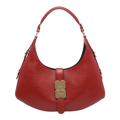 Ganni Ladies Shoulder Bag. SKU: A7077_818. Color: Red. Ganni Small Kat Shoulder Bag. 65% Leather (Recycled), 19% Polyurethane 16 Polyester.