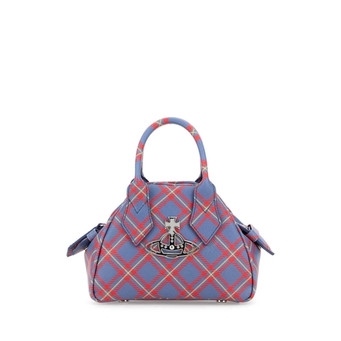 Vivienne Westwood Ladies Tote. SKU: 5C010006WS0022 K302. Color: Blueorangetartan. Vivienne Westwood Printed Synthetic Leather Mini Yasmine Handbag. Printed Synthetic Leather Mini Yasmine Handbag from Vivienne Westwood.