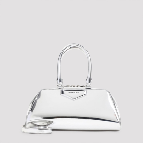 Givenchy Ladies Shoulder Bag. SKU: BB5130B29U 934. Color: Light Silvery. Givenchy Antigona Ew Small Handbag. Givenchy Light Silvery Calf Leather Antigona Ew Small Handbag. Pure light silvery calf leather handbag, top handles, top two-ways zipped fastening, front engraved lettering logo, adjustable and detachable shoulder strap, one main compartment.