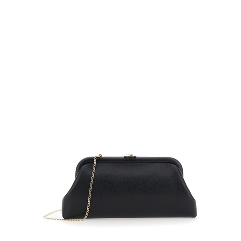 Clutch Black Chain-Link Shoulder Strap Kiss-Lock Closure With Logo Plaque Gold Tone Metalware Smooth Grain Leather Dimensions: 29X13X6 Cm Strap Drop: 26,5 Cmcomposition: