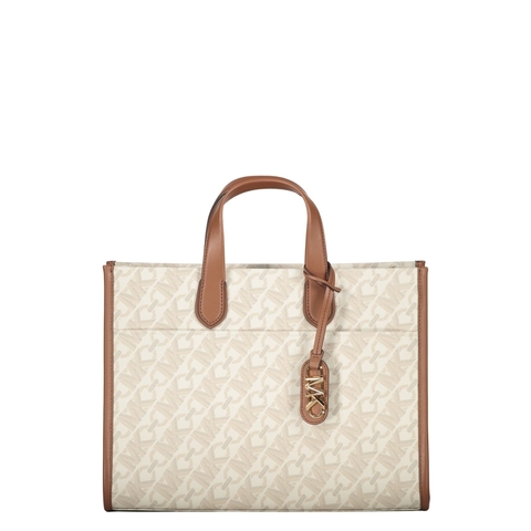 Michael Kors Ladies Tote. SKU: 30H3G3GT3B-099. Color: Vanilla/Luggage. Michael Kors Logo Detail Tote Bag. One open compartmentinternal zippered pocketjacquard fabric lining with logowidth: 40 cmheight: 30 cmdepth: 13 cm80% pvc, 16% polyester, 4% cotton. Composition: 80% % Pvc, 16% % Polyester, 4% % Cotton.