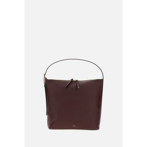 A.P.C. Ladies Shoulder Bag. SKU: PXCBLF61902GAU. Color: Red. A.P.C. Sac Vera Shoulder Bag. Double-zip closure, microfiber lining with pocket. Calfskin leather, gold details. Adjustable shoulder strap, brown color. Composition: 100% Cow Leather.