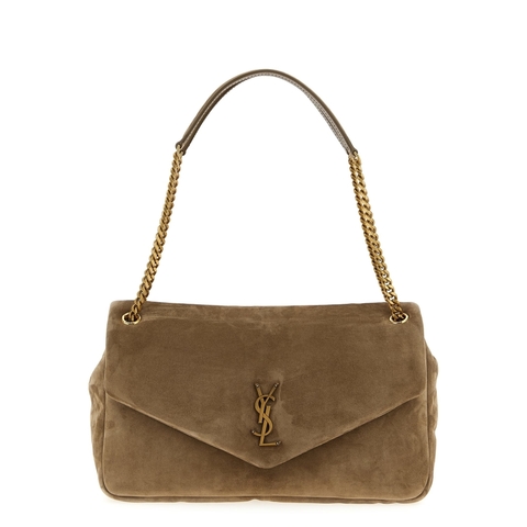 Saint Laurent Ladies Shoulder Bag. SKU: 7773991U80W2795. Color: Beige. Saint Laurent calypso Shoulder Bag. Calypso suede shoulder bag with chain shoulder strap, magnetic button closure, and zipper pocket. Composition: 100% calfskin leather (Bos Taurus)
