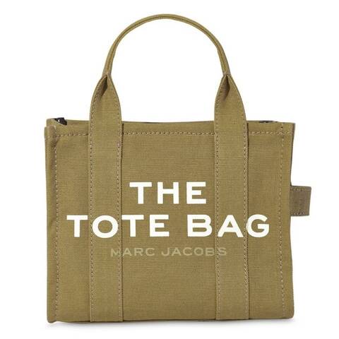 Marc Jacobs Ladies Tote. The Tote Bag series. SKU: M0016493372. Color: Green. Size: 10in L x 5in D x 8in H. Marc Jacobs The Small Logo Tote Bag - Green. Fashioned from textured cotton canvas, this bag showcases a chunky top zip closure for secure storage. Versatility is key with dual top handles or the option to attach the adjustable, webbing removable crossbody strap. Bold branding on the front in a contrasting tone adds a stylish finishing touch to this accessory.
