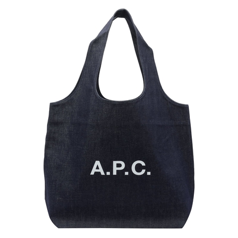 A.P.C. Ladies Tote. SKU: COHIZ M61565IAI. Color: Blue. A.P.C. Ninon Tote Bag. A. P. C navy Ninon tote bag, inner open pocket, 2 handles, frontal logo. Composition: 100% Cotton.