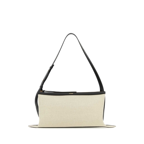 Jil Sander Ladies Shoulder Bag. SKU: J07WD0052P4918_280. Color: 280. Jil Sander Two-tone Canvas And Leather Medium Empire Shoulder Bag. Outside: 70% Cotton, 30% Linen Finishing: 100% Leather.