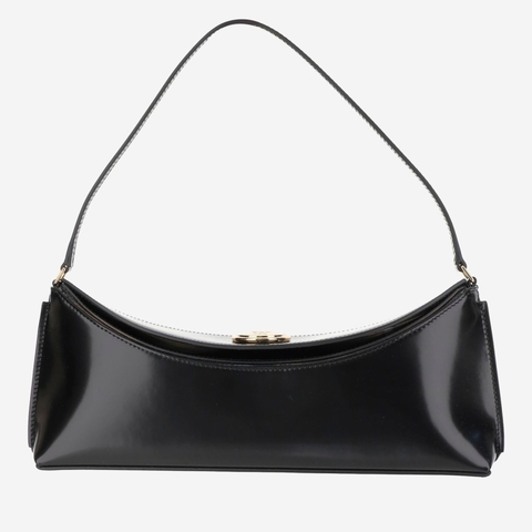 Jacquemus Ladies Clutch. SKU: BAW00438AC18A01990. Color: Black. Jacquemus Ovalo Leather Clutch Bag. Clutch bag made of glace leather Slim shoulder strap Magnetic flap with button Internal credit card pocket Cotton lining Black Made in France . Composition: 100% calfskin.