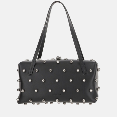 Jil Sander Ladies Shoulder Bag. SKU: J08WD0078P8345001. Color: Black. Jil Sander Goji Pillow Leather Shoulder Bag. Bag made of leather Design with metal studs all around Double handles on top Embossed Jil Sander logo Zipper closure Black. Composition: 100% calfskin. Made in Italy.