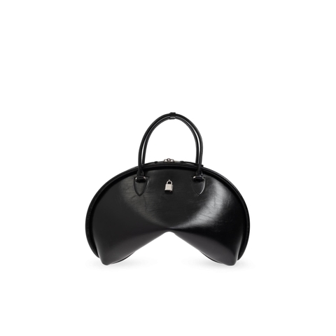 Acne Studios Ladies Tote. SKU: A10393900. Color: Black. Acne Studios Handbag. Introducing the Handbag from the discerning collection of Acne Studios, renowned for its avant-garde Scandinavian design. This handbag embodies the brand's philosophy of exuding elegance through premium natural leather, ensuring longevity and sophistication. The handbag's unique semi-circular design with a scalloped base offers a modern, artistic flair. Draped in a timeless black hue, it epitomizes elegance and versatility. The silver metallic zippers and fittings provide a subtle yet striking contrast, while a metallic plaque engraved with the designer's logo authenticates its exclusivity. Inside, the handbag reveals meticulous attention to detail. The interior is lined with quality fabric, featuring a secure zippered pocket for enhanced functionality. Two robust handles offer comfortable carrying, underscoring both practicality and style. Why Choose This Product? Unique semi-circular design for an artistic edge. Timeless black leather for classic elegance. Exquisite silver accents and designer logo plaque. High-quality interior lining and secure inner pocket. Crafted by Acne Studios, a pioneer in contemporary fashion. Composition: Leather Leather