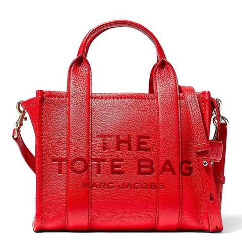 Marc Jacobs Ladies Tote. SKU: H009L01SP21617. Color: True Red. Size: 10in L x 5in D x 8in H. Marc Jacobs The Small Tote Bag In True Red. The Small Tote features a top zip closure, a top handle, and a removable, adjustable crossbody strap, along with an interior slip pocket and a card slot, all elegantly finished with debossed branding. Strap Drop 27in. Handle Drop 4in. 100% Leather.