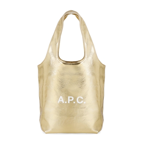 A.P.C. Ladies Shoulder Bag. SKU: PUABZ-M61861RAN. Color: Golden. A.P.C. Ninon Small Bag. Golden A. P. C. synthetic leather shopping bag for woman - Two handles - One main compartment - One internal zip pocket - Front contrasting colour logo. Composition: 88% Polyurethane, 8% Cowhide, 4% Other Fibres