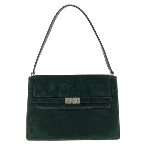 Tory Burch Ladies Shoulder Bag. SKU: 169256400. Color: Green. Tory Burch Lee Radziwill Large Shoulder Bag. Lee Radziwill' large suede shoulder bag with fixed handle, flap strap and front metal T-buckle, nappa lining. Composition: 100% calfskin leather (Bos Taurus).
