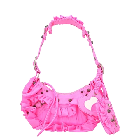 Balenciaga Ladies Shoulder Bag. SKU: 671309210FZ5627. Color: Fuchsia. Balenciaga Le Cagole Xs Ruffle Shoulder Bag. 78% Polyamide, 22% Elastane.
