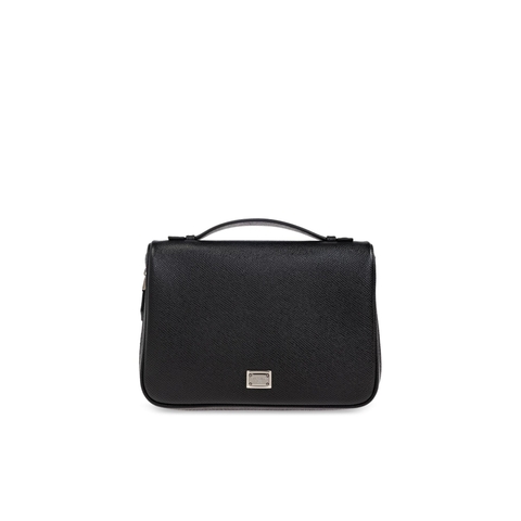 Discover The Artistry Of Dolce & Gabbana With This Luxurious Black Leather Handbag, Designed For The Discerning Modern Man. Crafted From Premium Saffiano-Textured Genuine Leather, Its Refined, Structured Silhouette Accentuated By Softly Rounded Corners Epitomizes Timeless Sophistication And Remarkable Durability. A Robust Top Handle Ensures Comfortable Handheld Carriage, While The Compact Form Offers Understated Elegance For Any Occasion. Distinctive Details Include Gleaming Silver-Toned Hardware And A Meticulously Engraved Designer Logo On The Front'S Rectangular Metal Plaque, Asserting The Bag'S Exclusive Pedigree. Finely Tailored Inside, It Pairs Enduring Materials With An Italian Heritage Of Innovation And Glamour. Why Choose This Product? Exquisite Saffiano Leather For Superior Scratch Resistance Iconic Dolce & Gabbana Hallmark Engraved Metal Plaque Polished Silver Hardware For A Touch Of Luxury Compact And Robust Shape, Crafted For Lasting Refinementcomposition: Inner Layer: 100% Fabric Outer Layer: 100% Leather