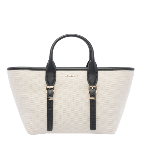 Michael Kors Ladies Satchel. SKU: 30S5G9OS1C 001. Color: Black. Michael Kors Collection Small Moore Satchel Bag. Michael Michael Kors white handbag, zip closure, inner open pocket, adjustable and removable shoulder strap, 2 handles, logo. Composition: 56% Cotton, 44% Polyester