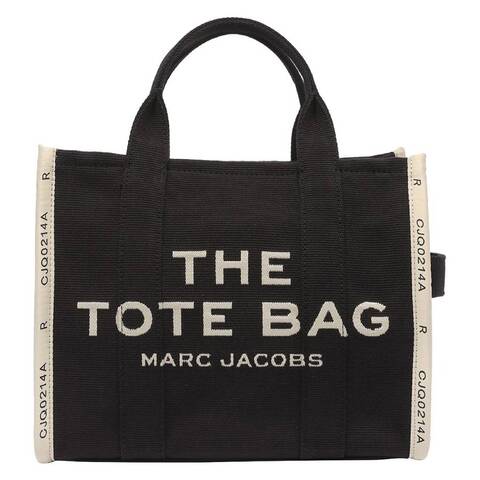 Marc Jacobs Ladies Tote. SKU: M0017027001. Size: 13in L x 6in D x 11in H. Marc Jacobs The Medium Jacquard Tote Bag. The Medium Tote is meticulously crafted from premium woven jacquard fabric, ensuring a luxurious feel. It boasts a convenient zip closure, along with a slip pocket and a card slot for added functionality. The tote is designed with a top handle and comes with a removable and adjustable webbing strap, providing versatility in carrying options. Strap Drop 27in. Handle Drop 5in. Outer: Cotton 64%, Polyester 36%.