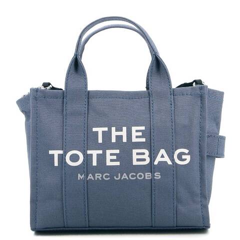 Marc Jacobs Ladies Tote. The Tote Bag series. SKU: M0016493481. Color: Blue. Size: 10in L x 5in D x 8in H. Marc Jacobs The Small Logo Tote Bag - Blue. Fashioned from textured cotton canvas, this bag showcases a chunky top zip closure for secure storage. Versatility is key with dual top handles or the option to attach the adjustable, webbing removable crossbody strap. Bold branding on the front in a contrasting tone adds a stylish finishing touch to this accessory.
