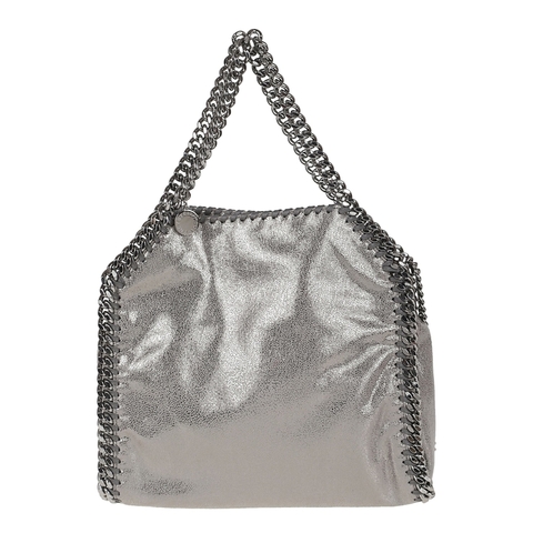 Stella McCartney Ladies Tote. SKU: 371223.WP0609 1113. Color: Steel Grey. Stella Mccartney Mini Tote Falabella. Classic Falabella mini tote, a must of the Stella McCartney brand present in all seasons with the color variant. Featuring a silver chain that follows the perimeter of the bag forming the handles to the top, a Stella McCartney logo tag, a snap button closure. Ideal to be worn both sporty during the day with sneakers and in the evening with a more elegant and feminine outfit.