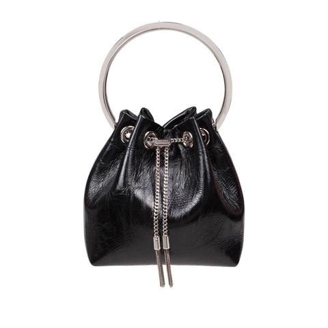 Jimmy Choo Ladies Shoulder Bag. SKU: BON BON TZZ. Color: Black /Silver. Jimmy Choo Bon Bon Tzz Patent Leather Bag Color Black. Patent leather handbag black color metal bracelet handle metal tassel closure and jimmy choo engraving chain shoulder strap dimensions: length 14cm height 15cm depth 9. 5cm length of the shoulder strap: 55cm height of the handle: 9cm made in italy
