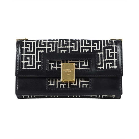 Balmain Ladies Shoulder Bag. SKU: VN0BK607TJGH_GFE. Color: Black. Balmain Fabric Shoulder Bag. Flap with interlocking closuregold-tone metal hardwarechain shoulder strapwidth: 28 cmheight: 16 cmdepth: 11 cmstrap: 100 cm90% cotton, 10% polyester. Composition: 90% % Cotton, 10% % Polyester