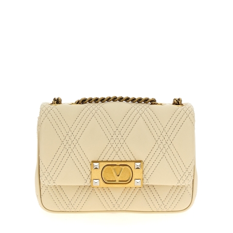 Valentino Ladies Shoulder Bag. SKU: W2B0R08XCAREN. Color: White. Valentino Garavani Quiltie 67 Shoulder Bag. Quiltie 67' shoulder bag in quilted nappa leather, flap closure with metal 'VLogo Signature' detail with antiqued pressure finishes and studs, sliding chain shoulder strap. Composition: 100% lamb leather (Ovis aries).