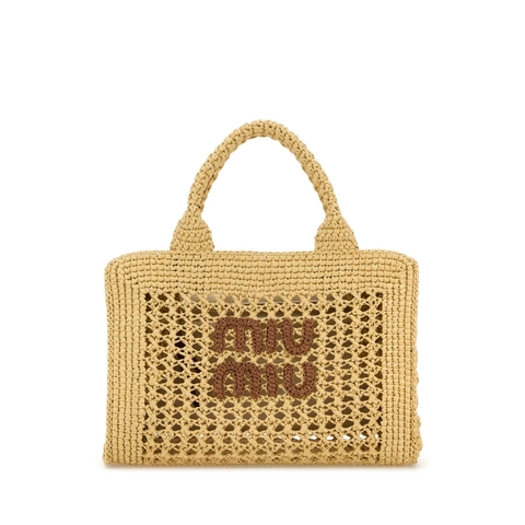 Miu Miu Ladies Tote. SKU: 5BA219ADO1 F0A5T. Color: Naturalecognac. Miu Miu Beige Crochet Handbag. Beige Crochet Handbag from Miu Miu.