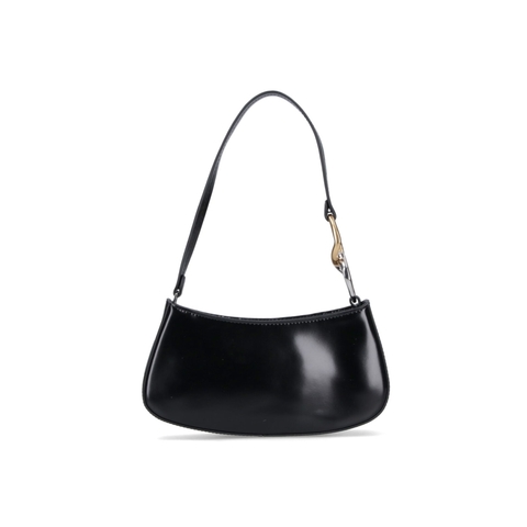 STAUD Ladies Shoulder Bag. SKU: 292 9383ABLACK. Color: Black. Staud Ollie Shoulder Bag. Staud 'Ollie' shoulder bag in black calf leather with top handle, gold and silver snap hook detail, zip closure, inner zip pocket, main inner compartment. Composition: 100% Calf Leather.