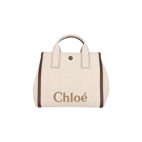 Chloe Ladies Tote. SKU: 25US910P1924P. Color: Beige. Chloe carry Tote Bag. Chloe 'Carry' cream cotton blend tote bag with raffia effect, calf leather trim, two handles, removable shoulder strap, snap button closure, logo embroidery on the front and back, side magnetic buttons, inner slip pocket, single inner compartment. Composition: 69% Cotton, 31% Polyamide