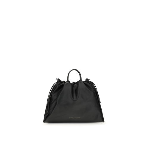 Brunello Cucinelli Ladies Shoulder Bag. SKU: MBGPD3612_C101. Brunello Cucinelli Shoulder Bag. Leather shoulder bag by brunello cucinelli featuring two flat top handles, drawstring closure, adjustable and removable shoulder strap, single compartment, iconic brand monogram press-stamped on front, monochrome pattern. Composition: 100% % Calf Leather Bos Taurus