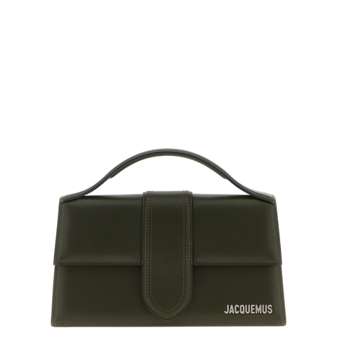 Jacquemus Ladies Tote. SKU: 22HBAW00007AC01C02580. Color: Green. Jacquemus Le Grand Bambino Handbag. Le Grand Bambino' leather handbag with magnetic flap closure, front metal logo applique, fixed handle, adjustable and removable shoulder strap. Composition: 100% cow leather (Bos Taurus).
