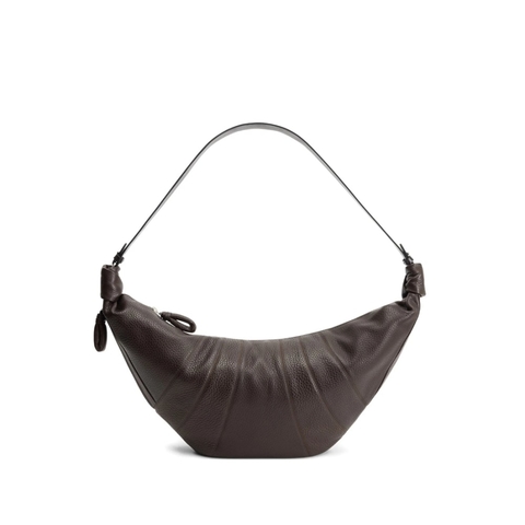 Dark Chocolate Brown Grained Leather Stitched Panels Knotted Detailing Zip Closure