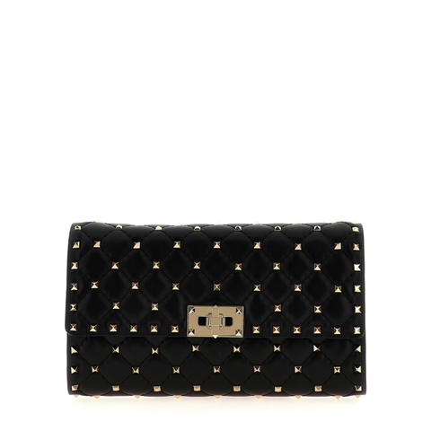Valentino Ladies Shoulder Bag. SKU: W2B0137NAP0NO. Color: Black. Valentino Garavani Rockstud Spike Shoulder Bag. Rockstud Spike' quilted nappa leather shoulder bag with stud applique, metal closure, removable chain shoulder strap. Composition: 100% lamb leather (Ovis aries).