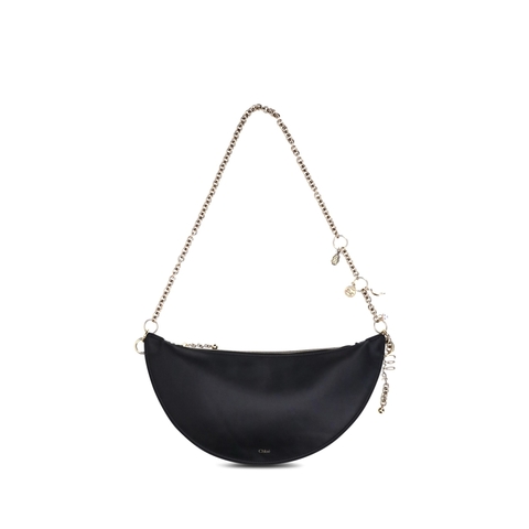 Chloe Ladies Shoulder Bag. SKU: CH25AS519P80001. Color: Black. Chloe Icons Shoulder Bag. The icons shoulder bag by Chloe is made of fine lambskin nappa leather, soft to the touch and with a sophisticated allure. the design is enhanced by the laminated logo printed on the front, giving it a bright and distinctive touch. equipped with a detachable metal chain shoulder strap, it can be worn on the shoulder or carried by hand for elegant versatility. the zippered closure ensures practicality and security, making it ideal for completing day or evening looks with a refined and modern style. Composition: 100% % Calf Leather Bos Taurus.