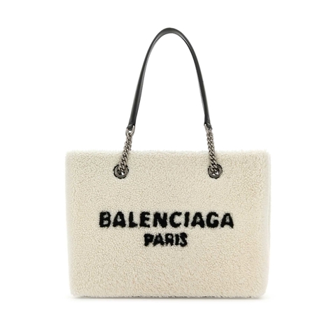 Balenciaga Ladies Tote. SKU: 7599732AAWO_9224. Color: Natural. Balenciaga White Shearling Duty Free M Handbag. T Shearling Lamb , 95%.