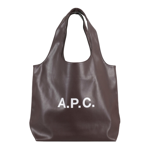 A.P.C. Ladies Tote. SKU: PUAAT M61565-097. Color: Cae Dark Brown. A.P.C. Tote Ninon. Ninon Tote Bag - A. P. C. - Dark brown color - Made of faux leather - Tote model - Single compartment - Double handles - Contrasting printed front logo - Dimensions: 45 x 35. 5 x 14 cm.