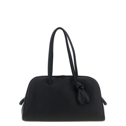 Jacquemus Ladies Shoulder Bag. SKU: 25EBAU00417AC03A03990. Color: Black. Jacquemus Le Turismo Shoulder Bag. Le Turismo' hammered leather shoulder bag in bowling style with front embossed logo, double fixed handle with tone-on-tone bow detail, top zip closure. Each leather is unique and has been carefully selected by a team of artisans. The model may have any imperfections or natural color variations. Composition: 100% calfskin leather (Bos Taurus).