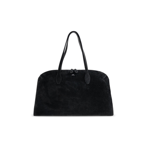 Toteme Ladies Tote. SKU: 252WAL0082LE0004001. Color: Black. Encapsulating understated sophistication, the 'Day' shopper bag by TOTEME is a statement in contemporary elegance. Meticulously crafted from sumptuous suede leather, this bag radiates a refined yet tactile allure. Its classic rectangular form with a gently rounded top imparts a timeless silhouette, while the spacious, soft construction is emblematic of the quintessential shopper. Cloaked in a deep, matte black, it exudes versatile charm that elevates any ensemble. The subtly embossed. Composition: 100% Leather.