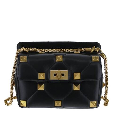 Valentino Ladies Shoulder Bag. SKU: 3W2B0I82BSF0NO. Barcode: 8052962250223. Color: Nero. Size: W 9.84 x H 6.3 x D 3.94. Valentino Quilted Leather Roman Stud Shoulder Bag. The Roman Stud shoulder bag is decorated with pyramidal. Valentino Garavanis magnified Roman Stud embellishments. Internal details: internal slot pocket, internal zipped pocket, leather lining. Made in Italy.
