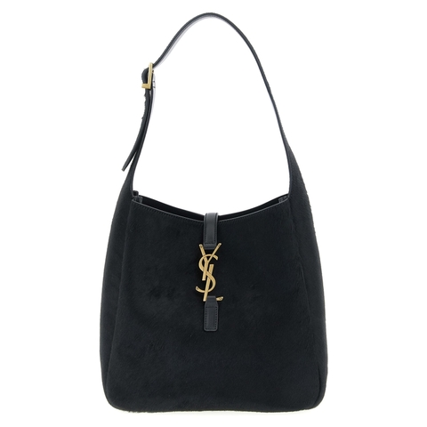 Saint Laurent Ladies Shoulder Bag. SKU: 850533AAFGV1000. Color: Black. Saint Laurent le 5 a 7 Small Shoulder Bag. Small 'Le 5 a 7' shoulder bag in pony-effect leather and smooth leather, tone-on-tone suede lining, adjustable handle, and interlocking antiqued metallic Cassandre logo closure. Composition: 100% calfskin leather (Bos Taurus)