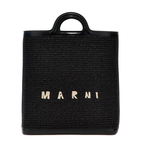 Marni Ladies Tote. SKU: SBMP0179Q0P3860_00N99. Color: Black. Marni Tropicalia Handbag. 52% Cotton, 48% Polyamide Contrast: 100% Cowhide Lining: 100% Cotton Metal parts: 100% Brass Metal parts 2: 94% Zinc, 4% Aluminium, 2% Copper