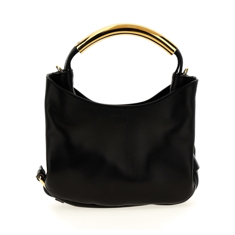 Moschino Ladies Tote. SKU: MC4198PP1MOA0000. Color: Black. Moschino Handle Me Bag Small Handbag. Moschino Handle Me bag Small' nappa leather handbag with adjustable decorative belt with metal logo, front embossed logo, handle with tubular metal, magnetic closure, adjustable and removable shoulder strap. Composition: 100% leather.